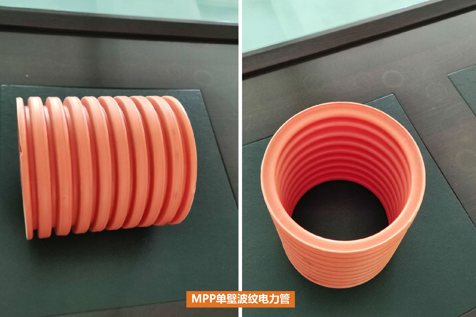 MPP單壁波紋電力管是以聚丙烯為主要原材料,采用復(fù)合增強(qiáng)改性特殊配方和加工工藝制成的新型結(jié)構(gòu)塑料管道,具有結(jié)構(gòu)新穎、強(qiáng)度高、耐溫性能好、施工簡(jiǎn)便、節(jié)省開(kāi)支等優(yōu)點(diǎn)。適用于10KV以上高壓輸電線電纜開(kāi)挖電纜排管工程,解決了工藝成型困難和材料復(fù)合增改性等行業(yè)難點(diǎn),創(chuàng)造性低設(shè)計(jì)了新穎的產(chǎn)品結(jié)構(gòu)和紐扣式鏈接方式,具有逛過(guò)的應(yīng)用前景。